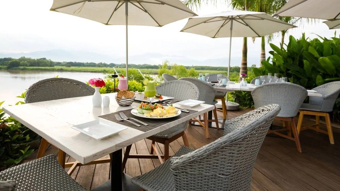 - This family-friendly resort features a sprawling outdoor swimming pool that stretches along the picturesque coastline